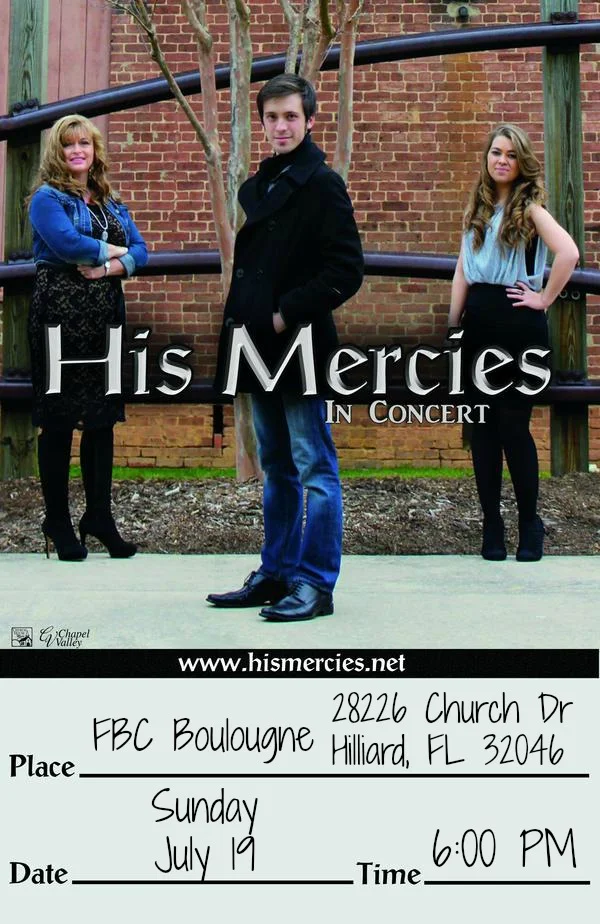Join us in welcoming "His Mercies" during the evening service. Please bring finger foods for a time of fellowship immediately following the service.